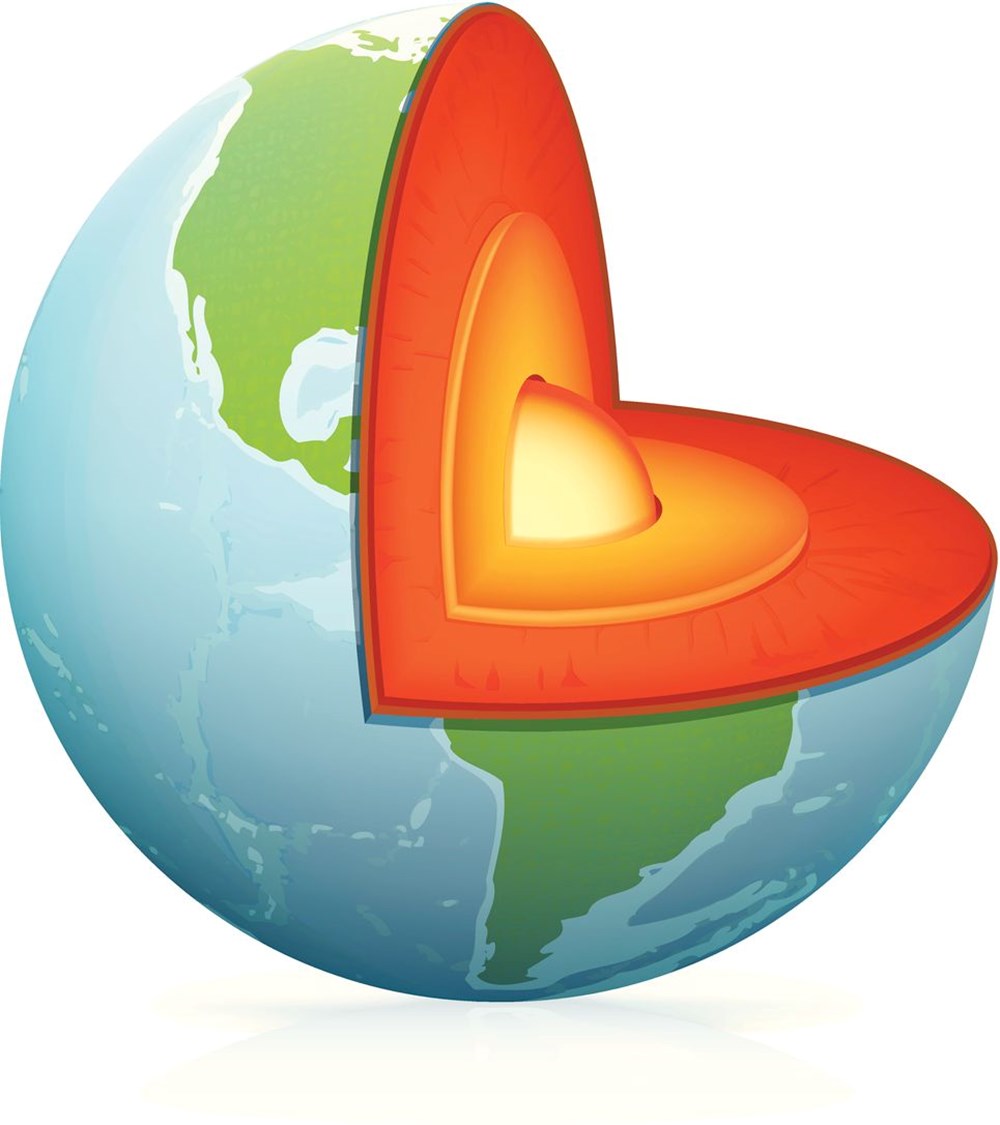 Bunu yumurta gibi düşünürseniz; yerkabuğu yumurtanın kabuğu gibidir, mantosu ki bu kalın bir kaya tabakasıdır- yumurtanın akı gibidir ve çekirdek de yumurtanın sarısı gibidir.